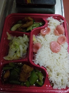 We bought the most horrific dinner, a nice vegetable section, coupled with super spicy chillies and fake sausage meat. Needless to say only the rice really got eaten.
